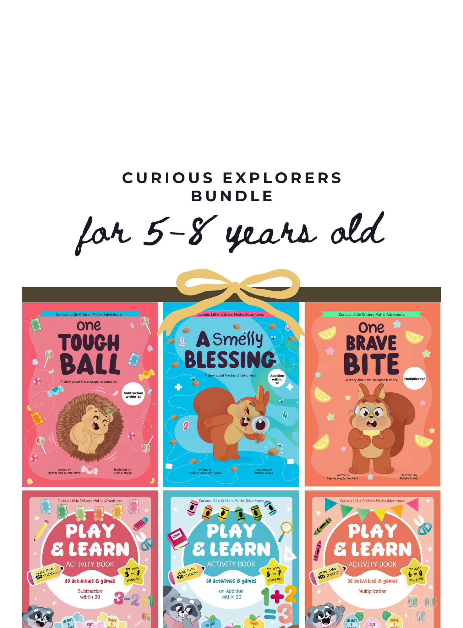 Fuel your child’s love for learning with the Curious Explorers Bundle for 5-8yo! Covering addition, subtraction, and introductory multiplication, this bundle turns math concepts into fun, hands-on adventures. Kids also develop critical thinking, collaboration, and self-confidence — all while exploring numbers in meaningful ways.