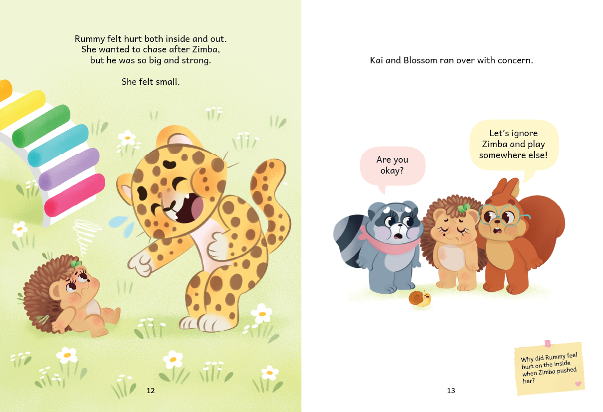 Rummy loves having fun with her friends, but things take an unexpected turn when a bully comes around, leaving her feeling small and helpless. Will she find the courage to stand up for herself? Join the critters on a heartwarming journey that proves even the smallest can be the bravest!